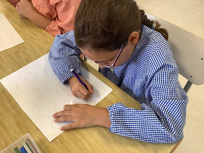 Aquest dimarts hem conegut una nova tècnica per dibuixar, ha estat el puntillisme. La tècnica consistia en reseguir el dibuix de les onades del mar fent puntents amb rotoladors o mullant el dit amb pintura.